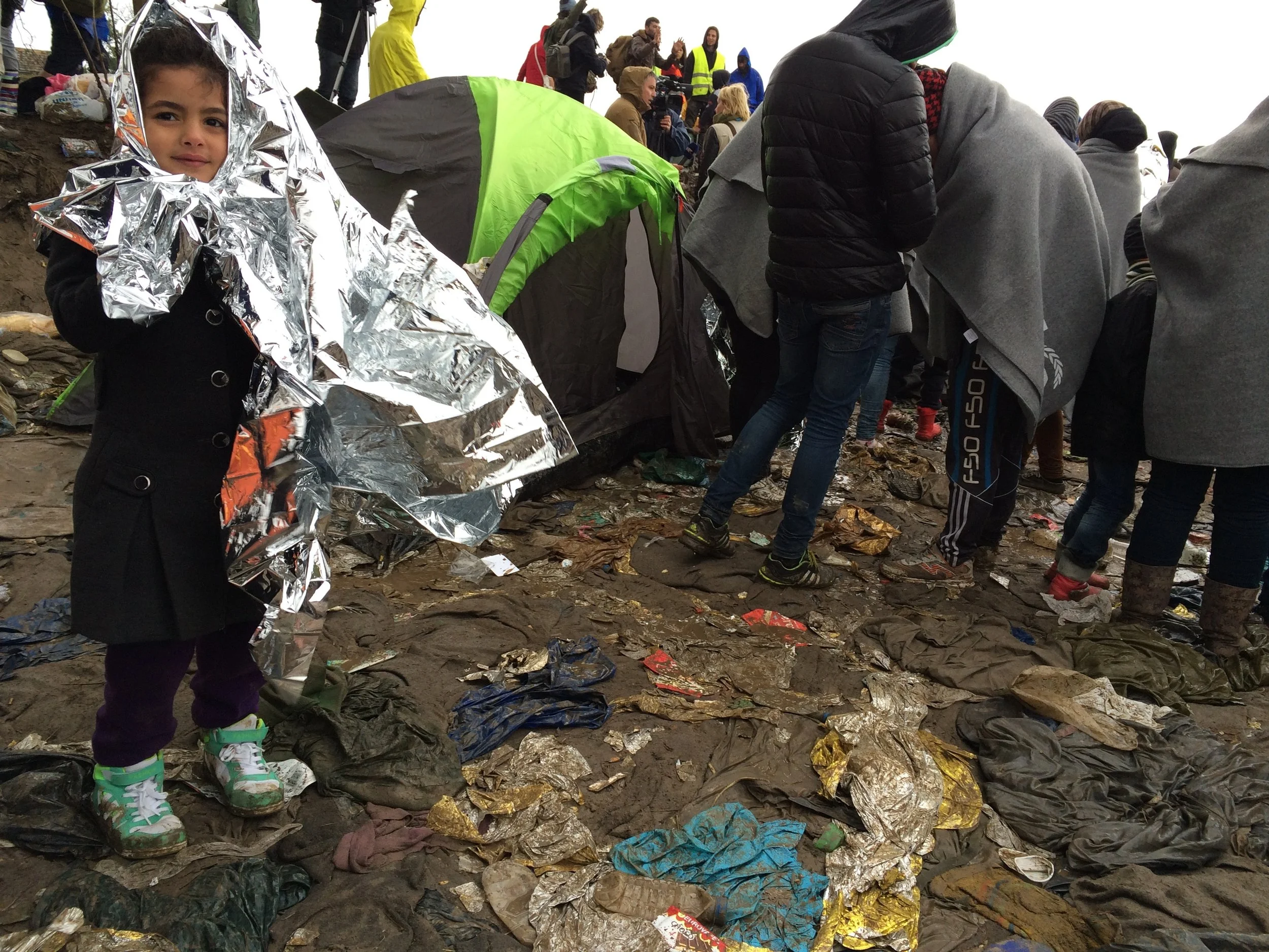 This image was taken on the border between Syria and Croatia in October 2015 when thousands of migrants were fleeing Syria and headed for Europe. It was cold and raining and it was not clear when the border gates would open. Brave girls like this one kept hopes alive.
